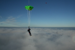 im Freifall, das Fliegen am Schirm und endet schließlich mit der